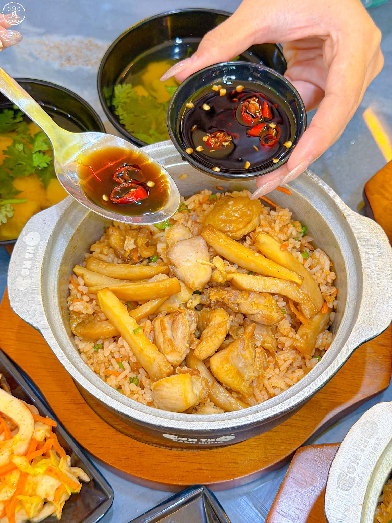 • Canh nóng + rau (kim chi, dưa chua): ăn kèm, giúp cân vị