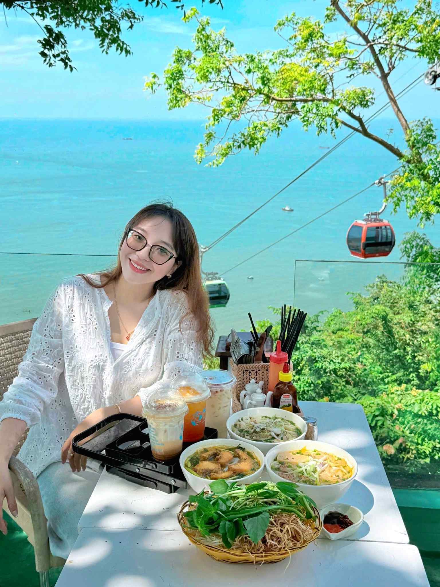 . Ngồi trên cao, gió biển thổi vi vu, view biển xanh ngắt nhìn mấy chiếc cáp treo bay lơ lửng dưới chân – cảm giác chill phết luôn á