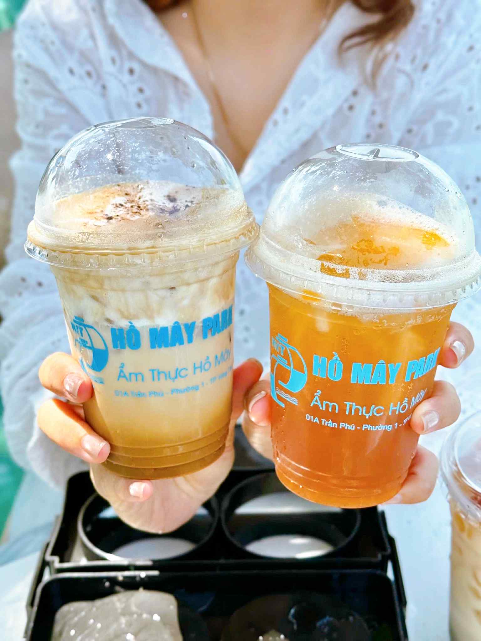 Uống kèm là mấy ly trà sữa, cà phê muối mây, trà trái cây siêu mát lạnh. Cà phê ở đây đậm đà đúng gu, còn trà đào thì thơm lừng, uống xong tỉnh cả người luôn.