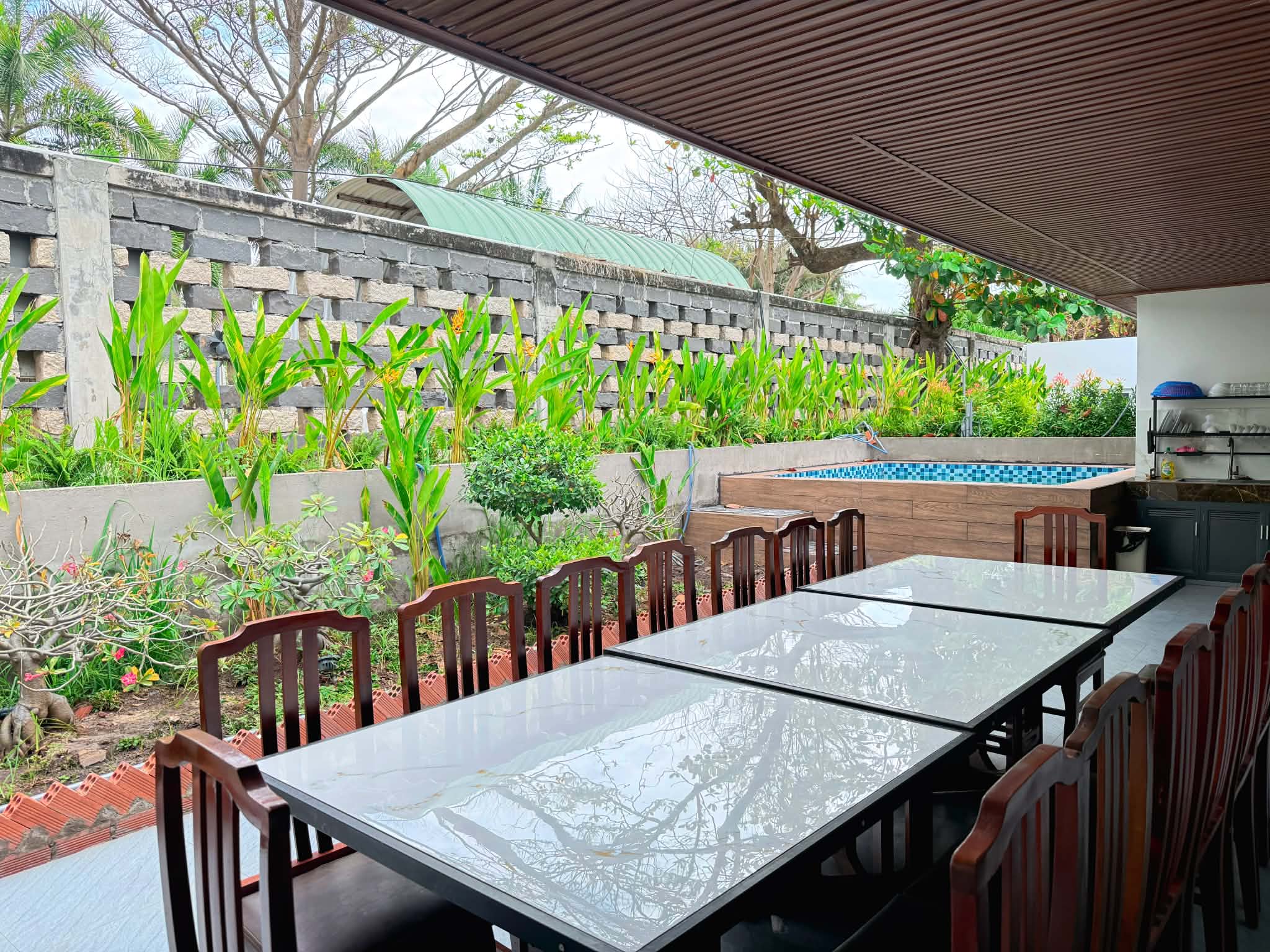 Căn 5: Hồ bơi ngoài trời thoáng mát, không gian rộng rãi để tụ tập nướng BBQ.