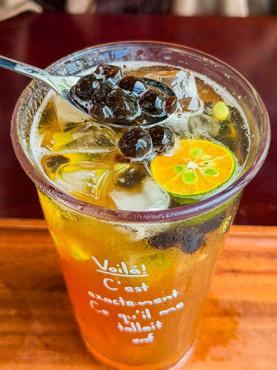 - Trà lài sốt tắc: sốt tắc nấu cùng đường mạch nha, vị chua ngọt thanh, không bị gắt, uống giải nhiệt cực ổn.