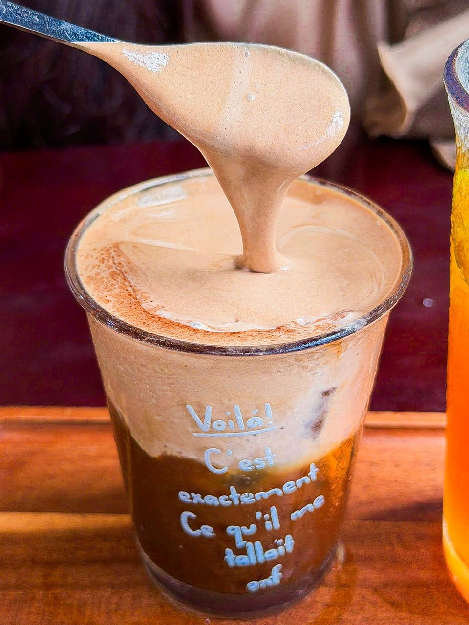 - Cafe kem béo Buôn Mê: lớp kem béo mịn phủ trên cafe đậm vị, khuấy nhẹ lên uống sẽ thấy vừa béo vừa thơm, không bị đắng gắt, hậu vị khá dễ chịu – ai không uống được cafe quá mạnh vẫn ổn áp luôn nhen.