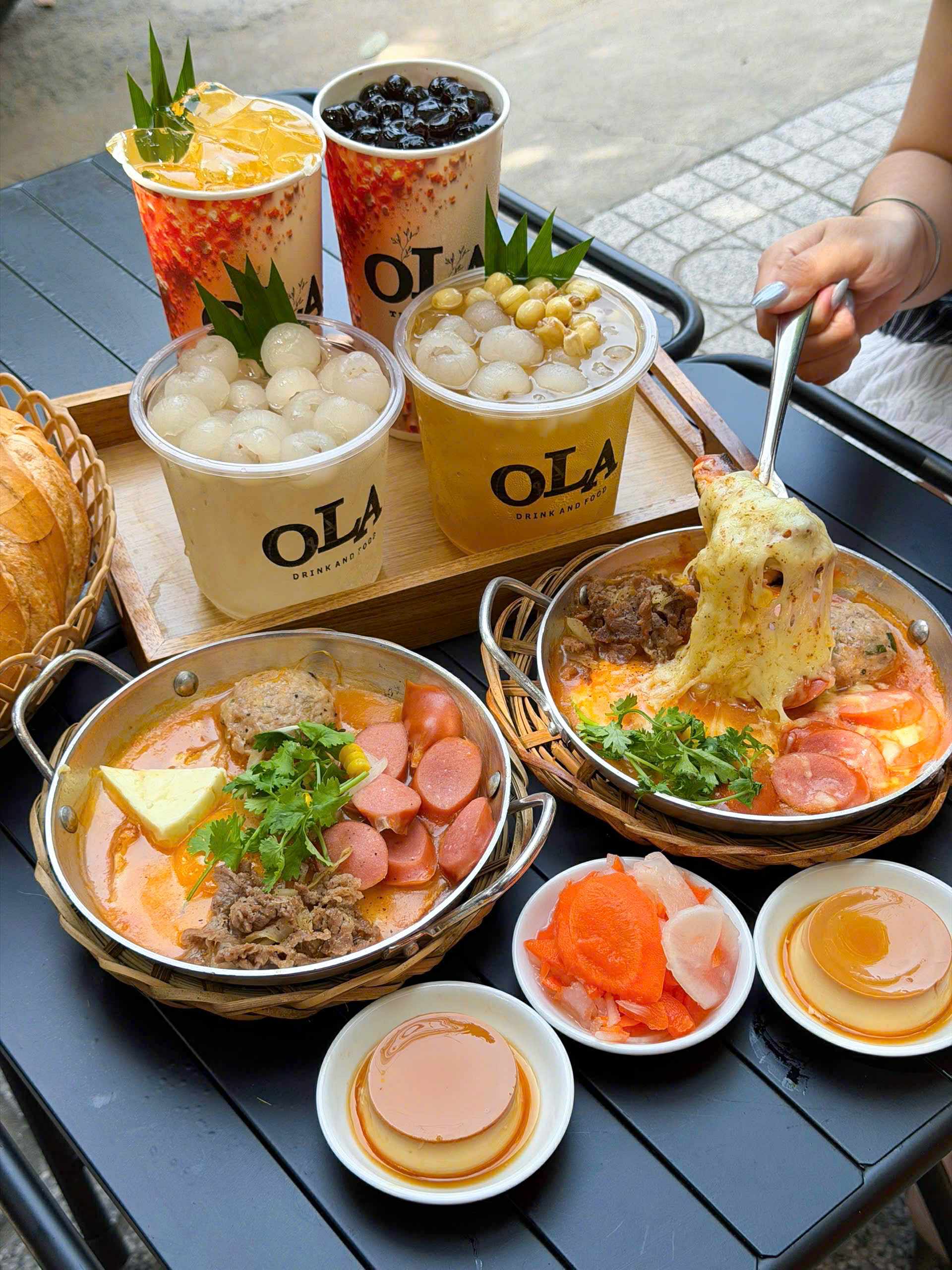 Ngoài ra quán còn có các loại trà trái cây tươi và trà sữa. Ăn xong làm ngụm trà trái cây là "hết nước chấm". Ly nào ly nấy topping đầy ụ luôn. Tui mê nhất “ Trà long nhãn hạt sen” Trái nhãn tươi giòn ngọt, hạt sen bùi bùi, trà thơm, thanh mát chứ không hề ngọt gắt đâu nha. Team trà sữa trân châu cũng có phần luôn nè