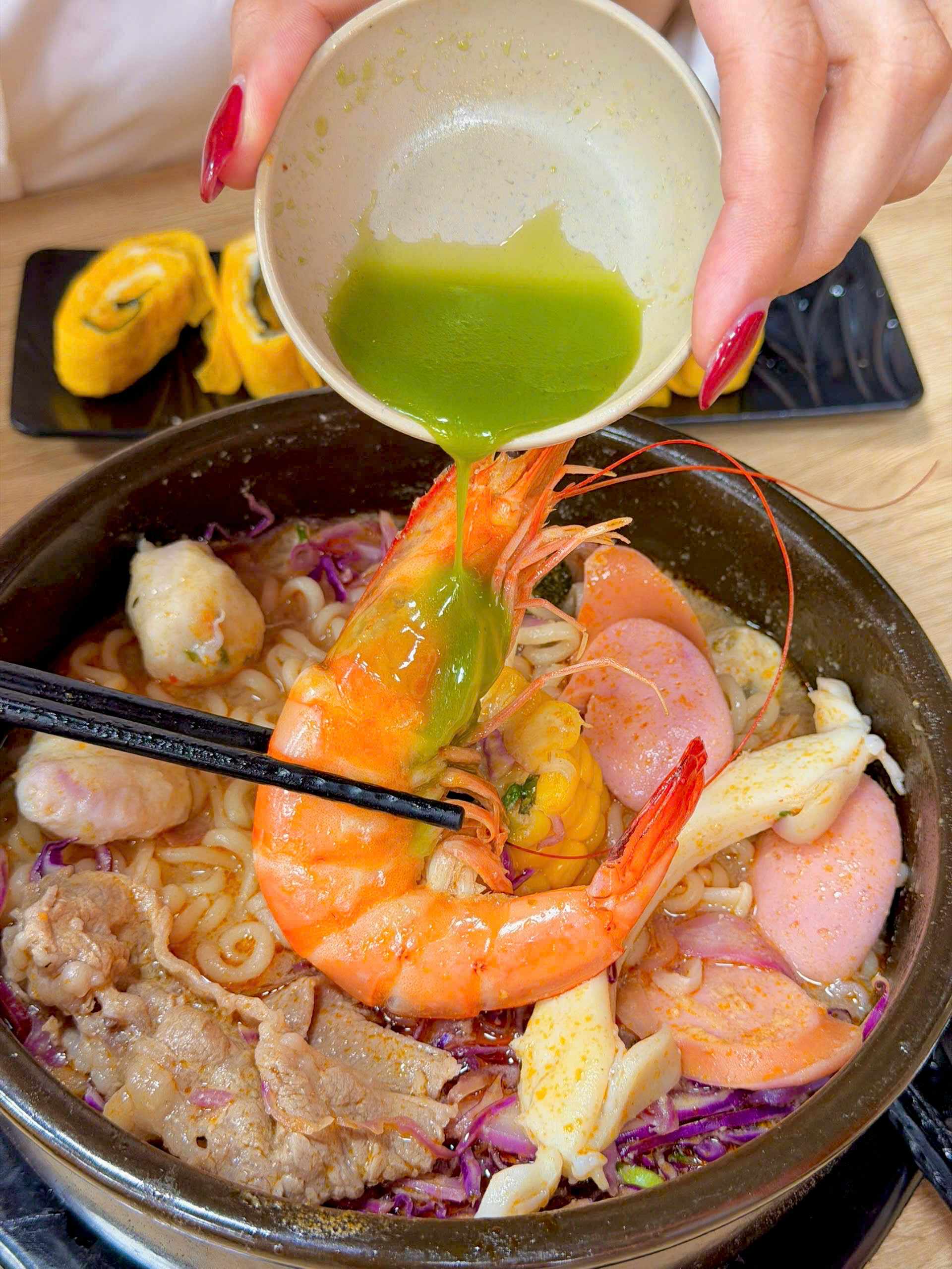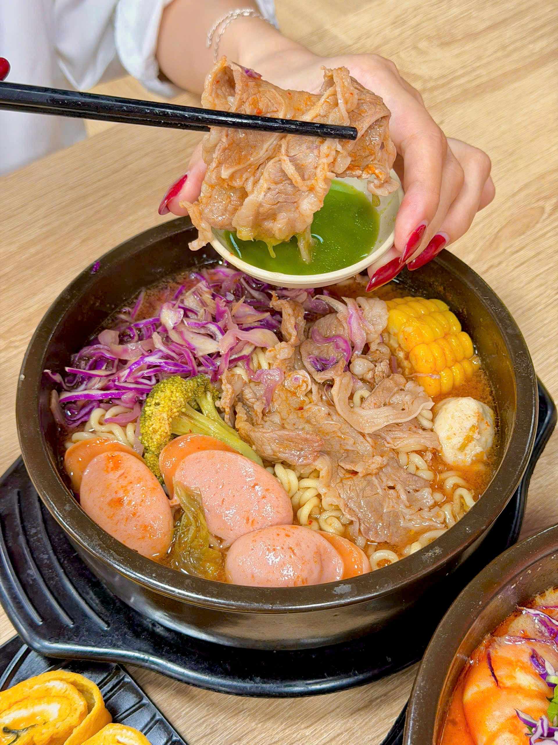 Nếu team mình đông muốn “nâng level” hơn nữa thì quán còn có lẩu hải sản siêu đầy, topping phải nói là “tràn nồi” – tôm, mực, bò, rau nấm tươi rói. Nhìn màu nước lẩu đỏ au mà muốn ăn liền luôn!