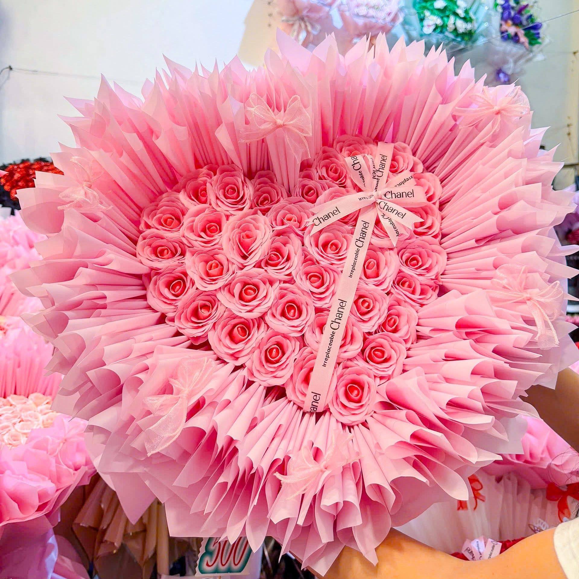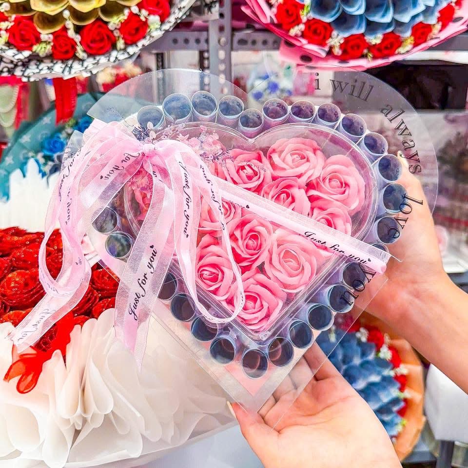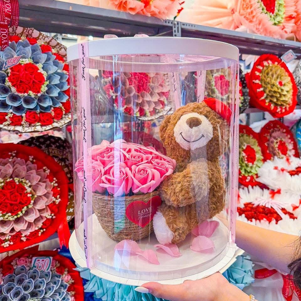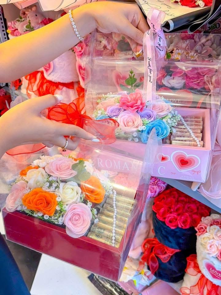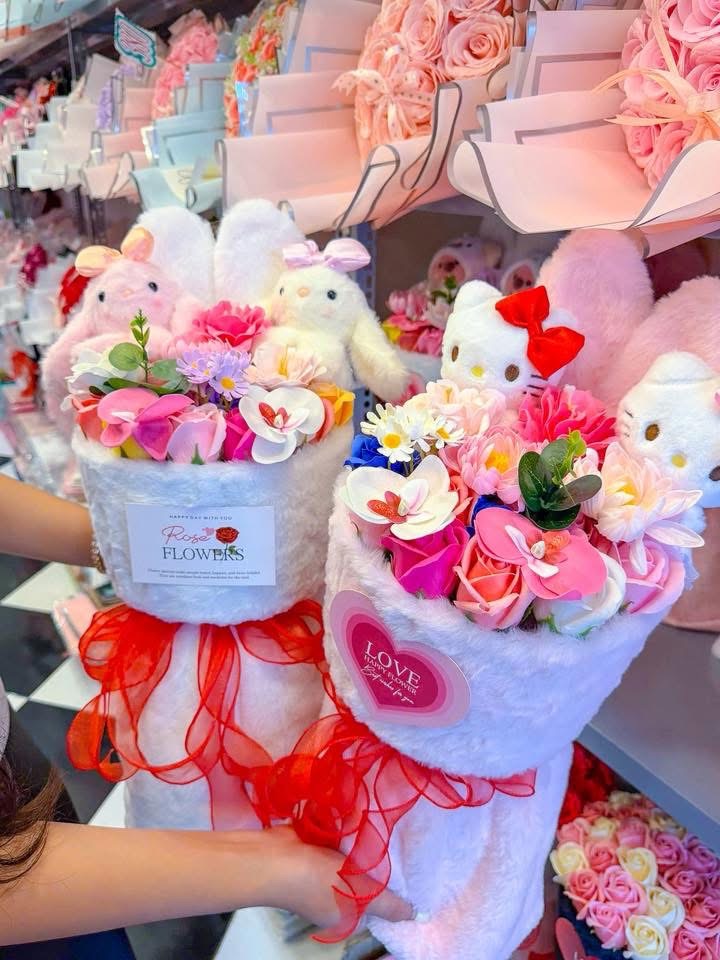 Ngoài hoa tiền thì mẫu mã cũng đa dạng vô cùng: hoa pastel, vintage, hoa gấu bông, baby three, gấu dâu, labubu hay các giỏ hoa sáp theo trend….Tiệm bắt trend siêu nhanh nên lúc nào cũng có mẫu mới nhìn mê lắm.