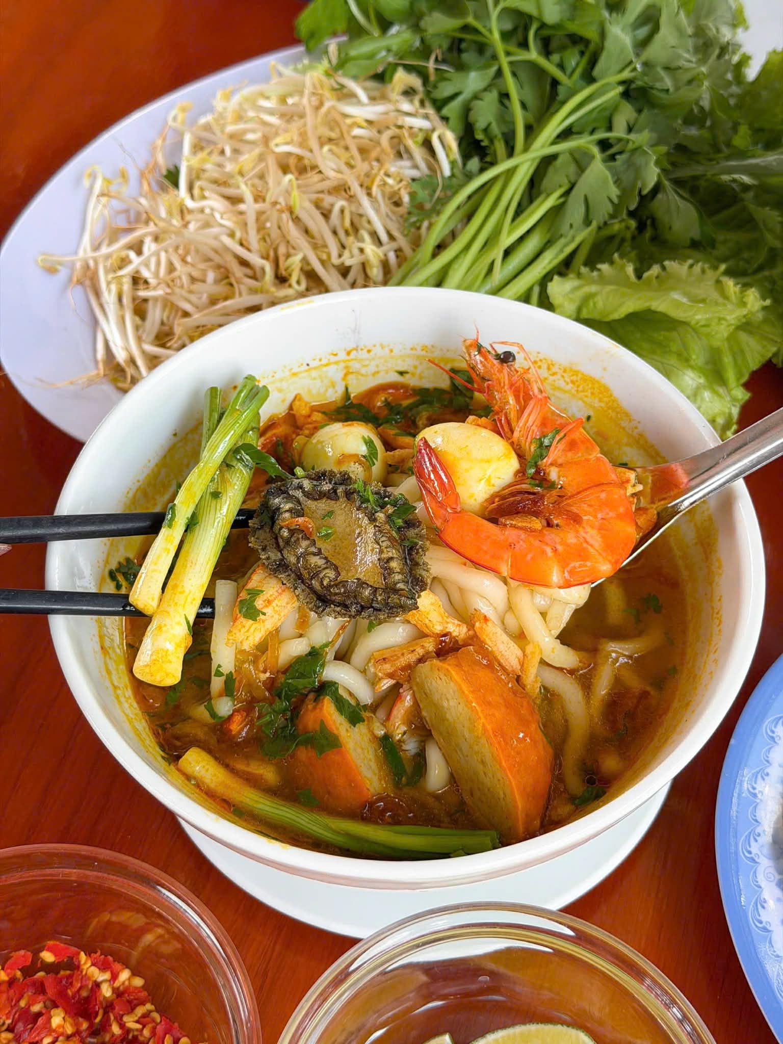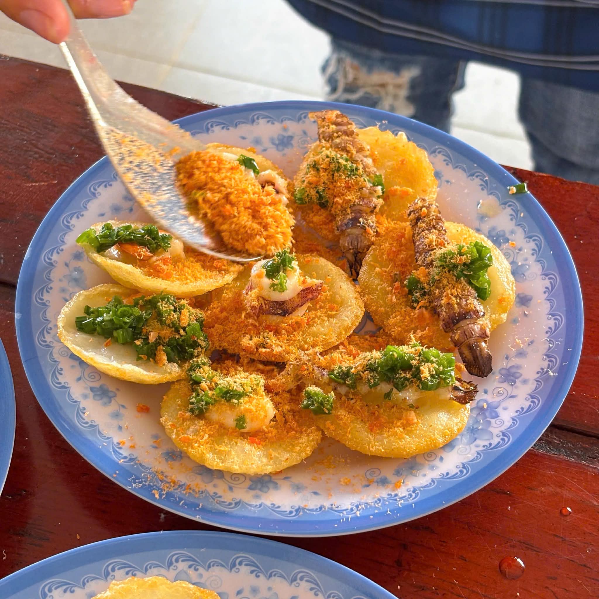 Đến đây nhất định phải gọi bánh khọt nha. Bánh khọt ở đây có nước cốt dừa béo thơm, bánh bên trong mềm, bên ngoài giòn