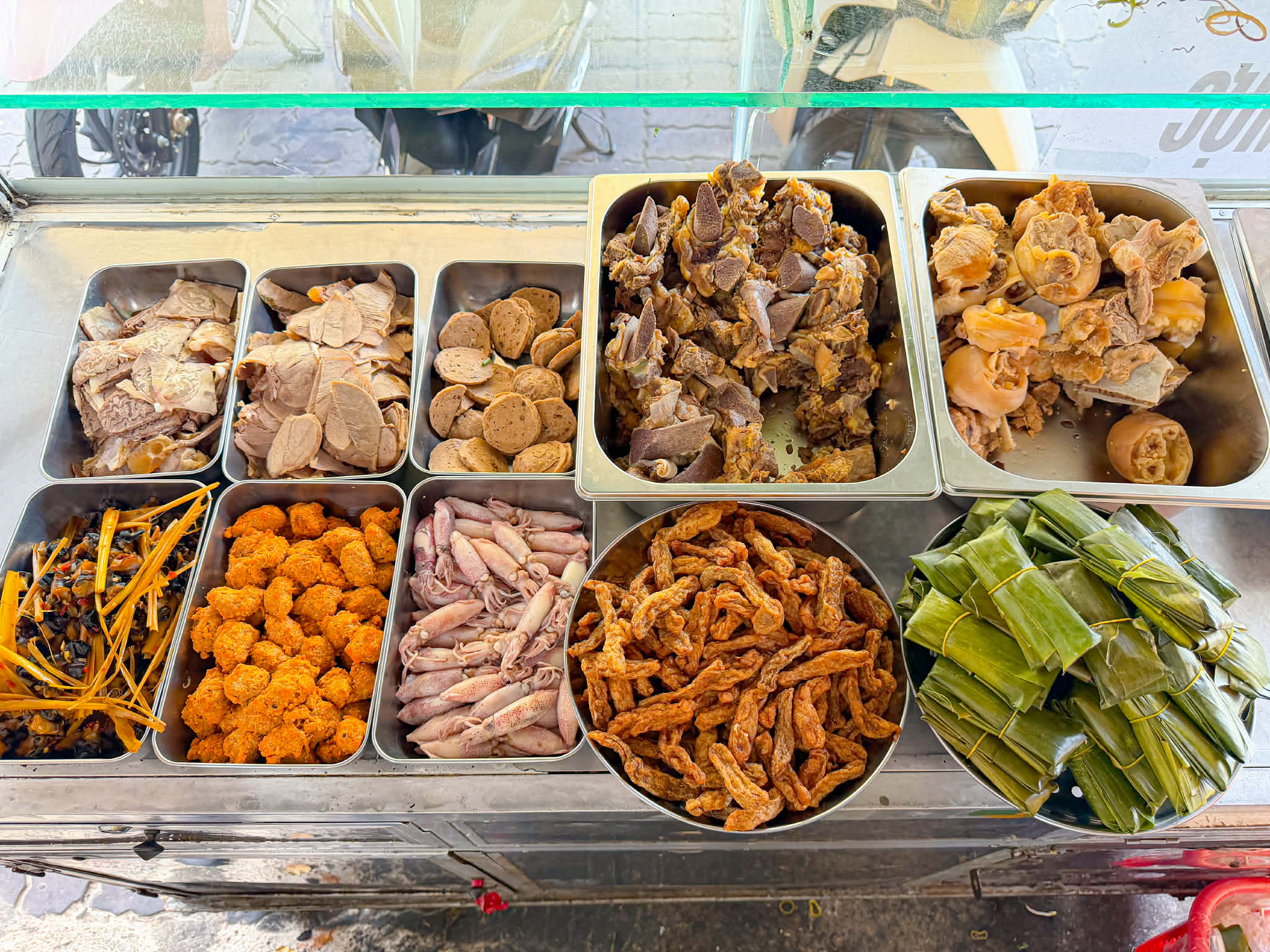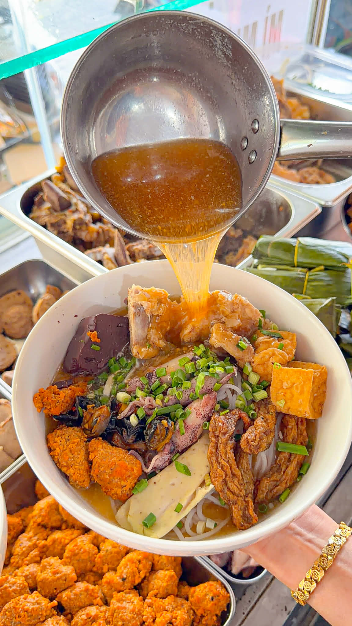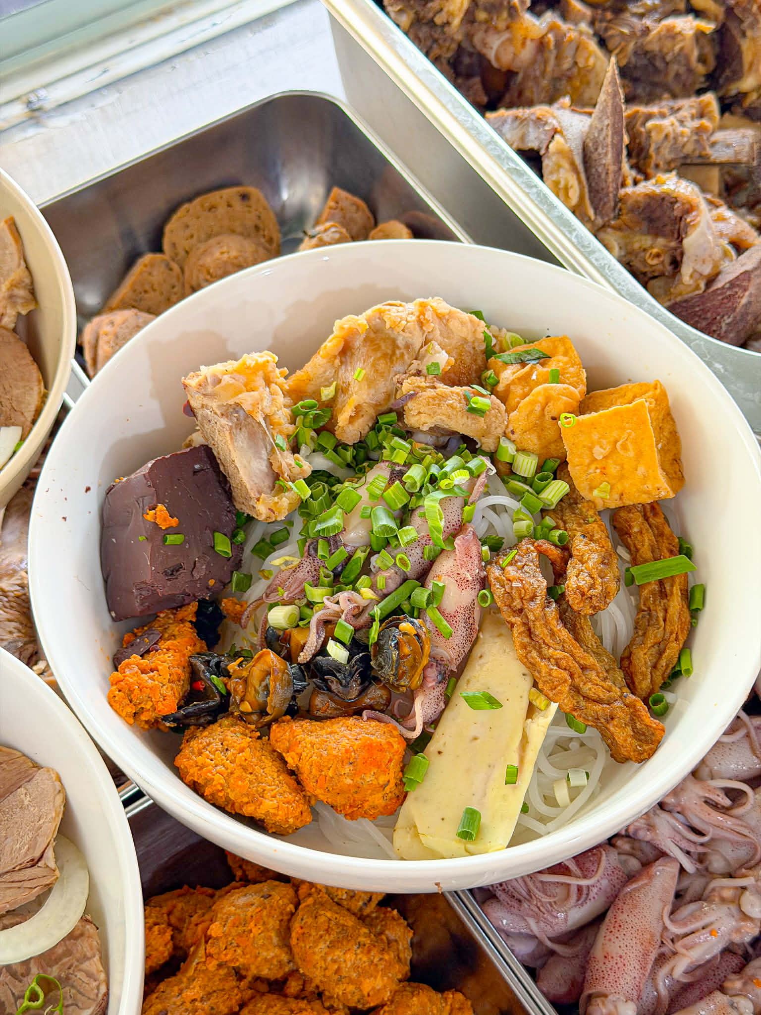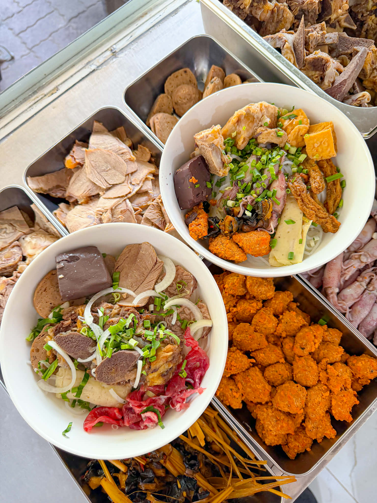 mà topping cũng ngập lắm á nào là nạm, bò viên, chả Huế, huyết bò, ăn đã miệng luôn.