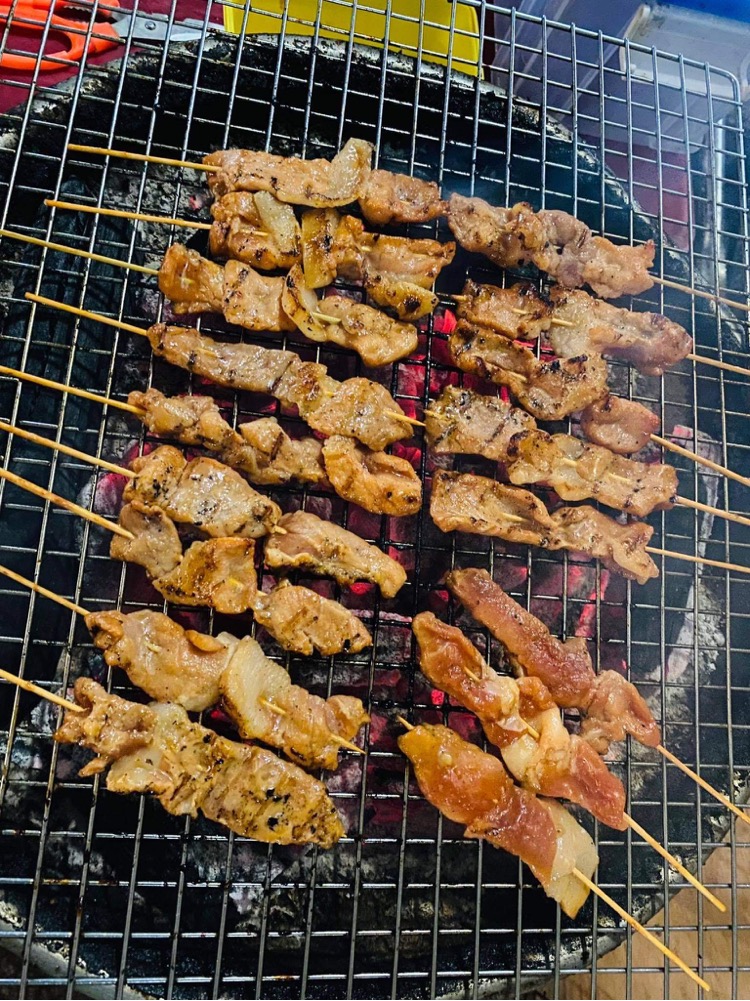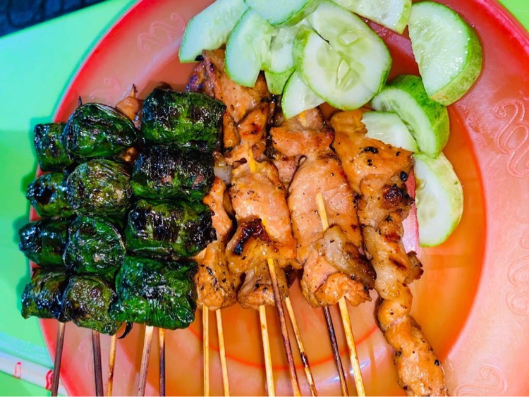 Mình thích xiên thịt nướng bò nướng, thịt mềm thơm nướng nóng ăn ngay luôn.