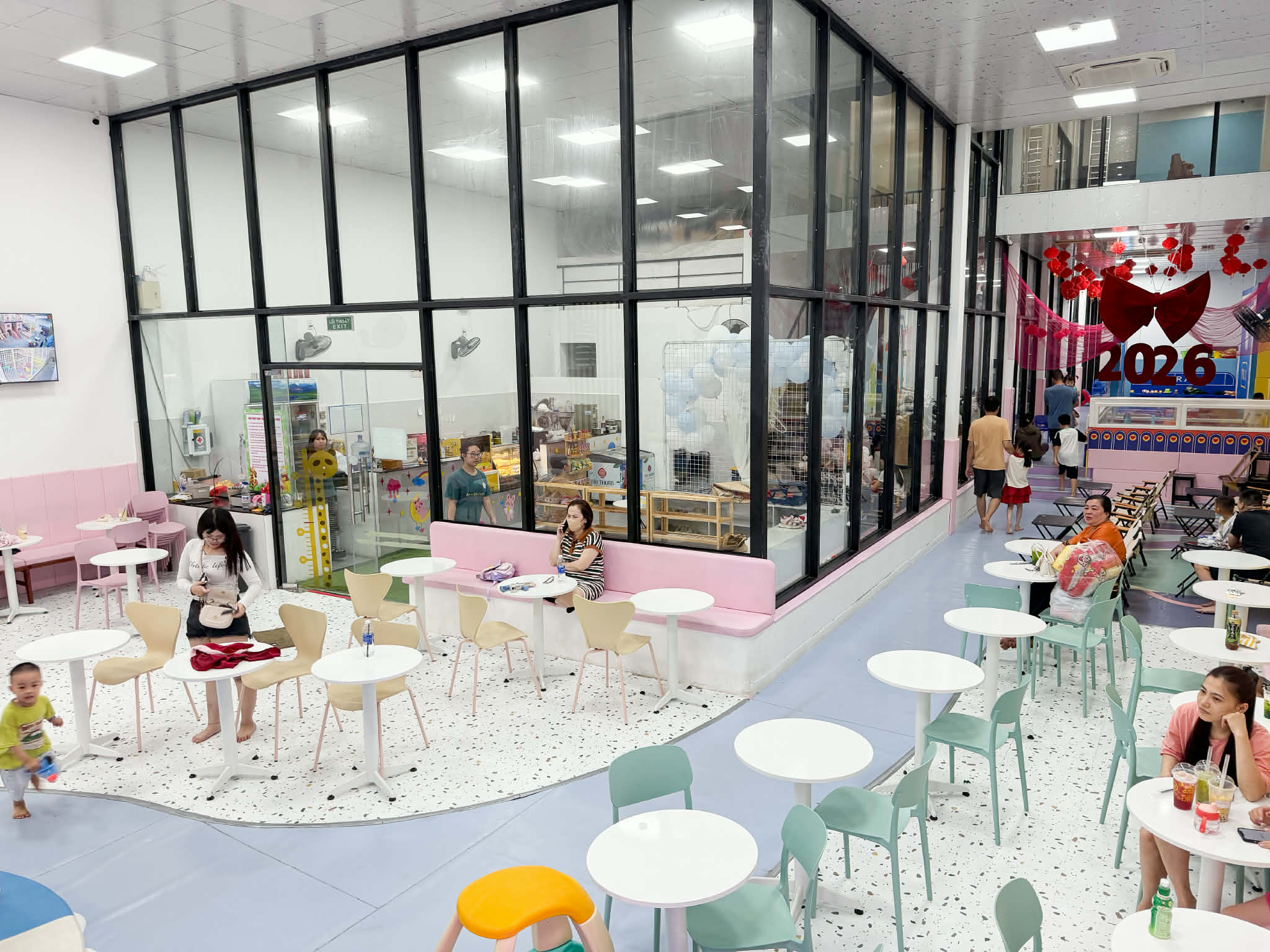 Tết này khu vui chơi mở cửa xuyên Tết luôn nha, giá vé ngày Tết là 70k/vé nhưng với không gian và trải nghiệm như vậy thì rất đáng ha. Khu vui chơi có nhận tổ chức tiệc sinh nhật, thôi nôi,.. ở tầng trên. Mùa Tết này ba mẹ chưa biết đưa bé đi đâu thì note lại khu vui chơi này nha