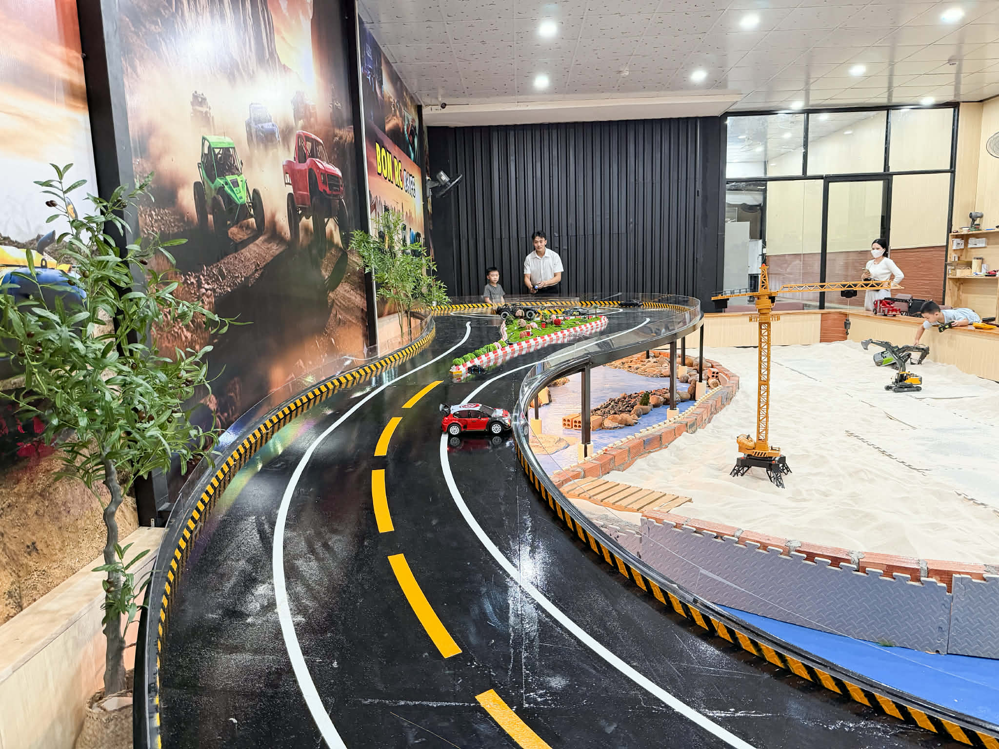 . Điểm nổi bật nhất chính là khu đua xe mô hình siêu xịn, từ đường đua, địa hình đến đường cát và nhiều loại siêu xe đủ kiểu cho bé lựa chọn