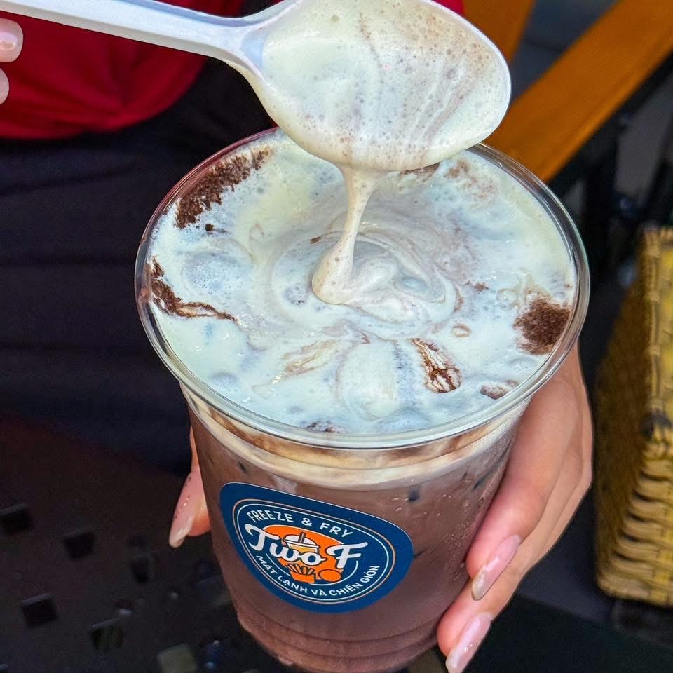 Kem Muối Cacao Latte – 35 xu: Cacao đậm hòa với lớp kem muối mằn mặn ở trên, béo nhưng không ngấy. Ê tui ghiền món này nha, mọi người thử xem sao