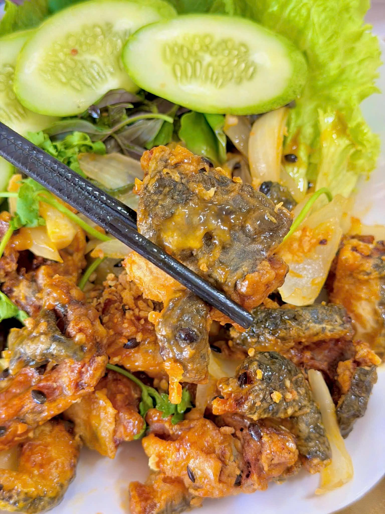 🐚 Ốc bươu hấp Thái (80k): Món này ai mê vị chua cay là ghiền liền. Nước hấp kiểu Thái chua cay thơm sả, ốc bươu to, giòn, không bị tanh. Húp miếng nước là tỉnh người luôn á 😆 🐸 Ếch chiên giòn sốt chanh dây (120k): Combo nghe lạ mà hợp không tưởng. Ếch chiên giòn bên ngoài, bên trong vẫn mềm. Sốt chanh dây chua chua ngọt ngọt rưới lên làm món này “nâng tầm” hẳn, ăn không bị ngấy mà còn rất bắt vị