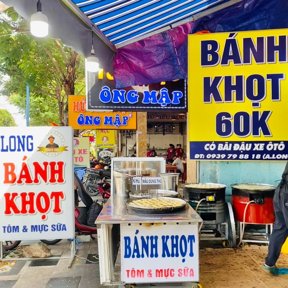 Được nhỏ bạn thổ địa Vũng Tàu dẫn đi ăn quán Long bánh khọt. Ưu điểm của quán là bột bánh khọt quán làm từ gạo và đậu xanh và được xay trực tiếp tại quán. Nghe hấp dẫn quá nên phải đi liền.