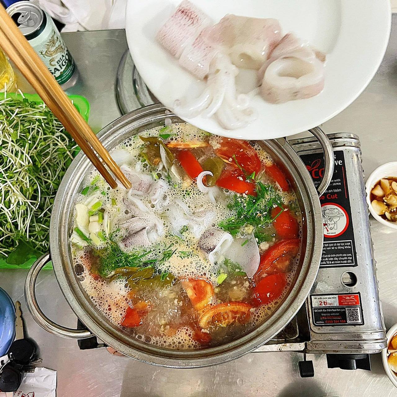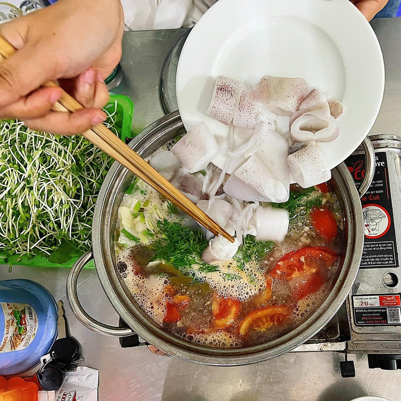 Phải nói là mình siêu thích khẩu vị ở đây luôn, cộng thêm cách phục vụ cũng rất nhiệt tình, dễ mến của cô chú chủ quán. Về ăn đồ ăn rất là tươi ngon luôn nha, phần nước lèo được nấu với thịt bằm tôm khô, khá là ngọt.