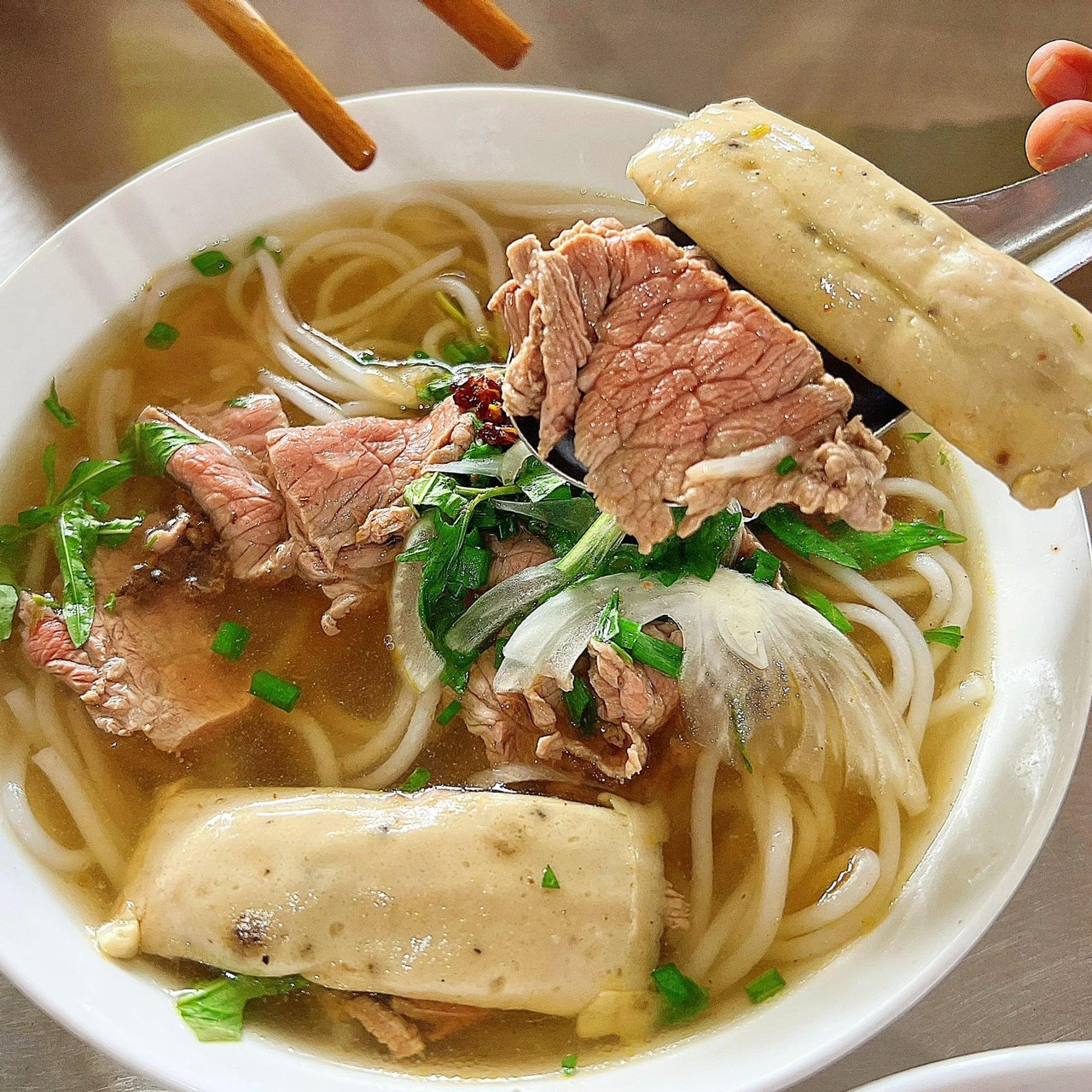 Nhận xét về bún bò, riêng cảm nhận của mình thì mình thấy bò ở đây khá mềm, nhiều, tô đầy đủ mà 2 miếng chả, nước ngon, đậm đà, rau thì siêu nhiều luôn.