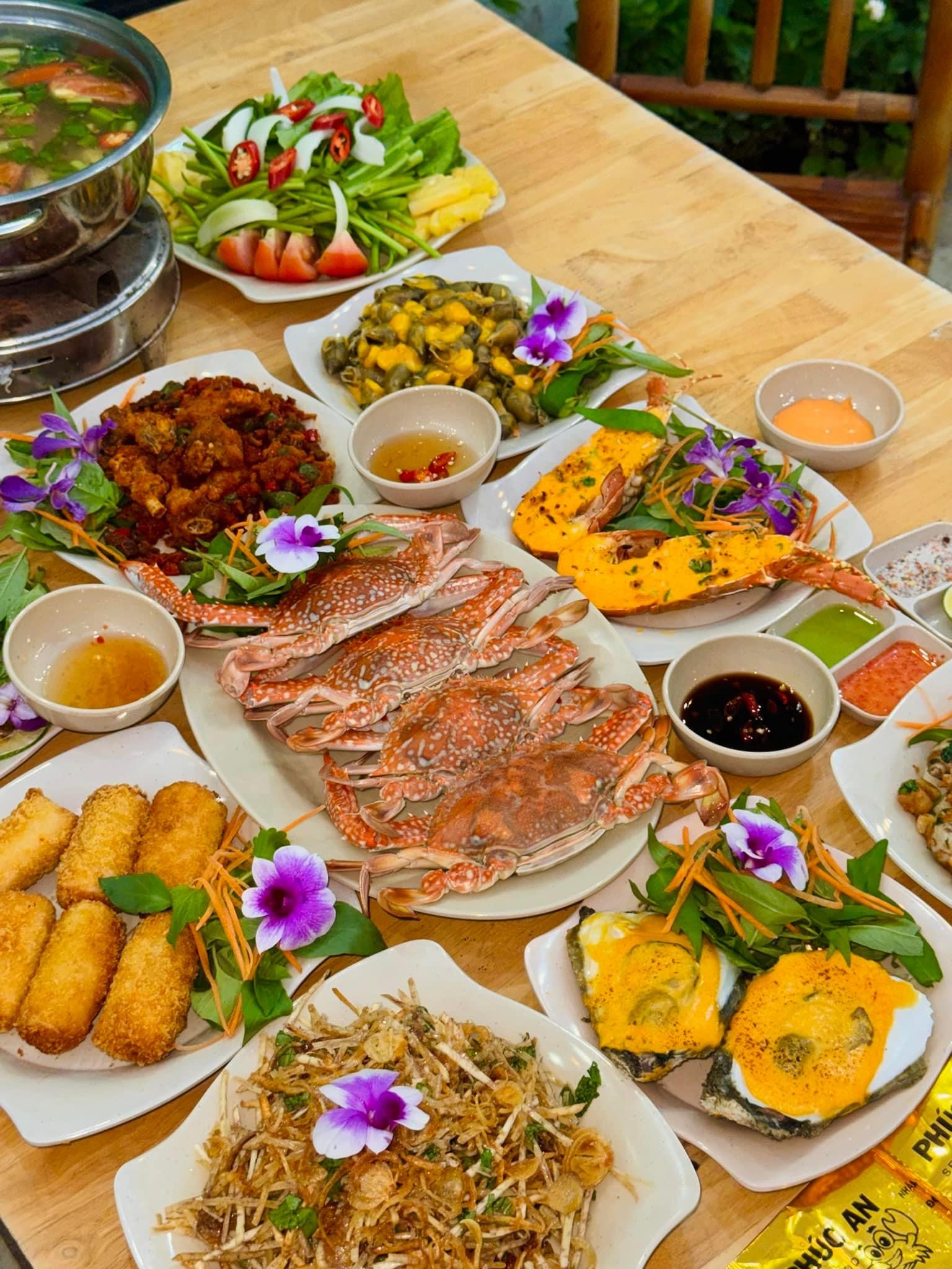 ✨ Về món hải sản tươi sống nhóm mình gọi ghẹ hấp, tôm hùm nướng phomai, ốc cà na 60k/phần & ốc hương 100k/phần: hải sản tươi, ngon, thịt chắc, chế biến vừa ăn, mình ưng món sốt trứng muối của quán mà giá vậy quá ổn áp với bọn mình.