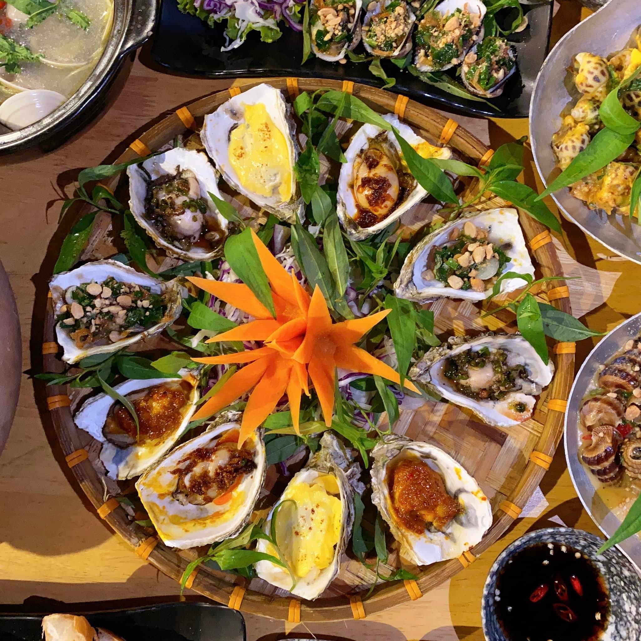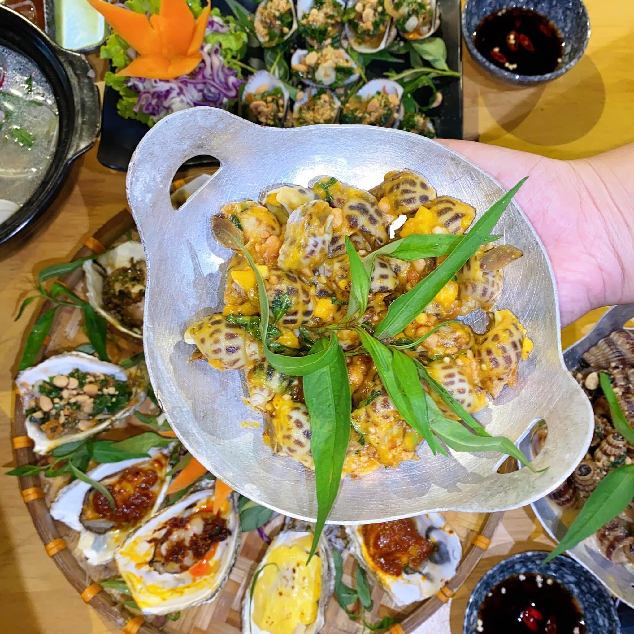 ốc 69k,99k thì có gọi ốc len xào dừa, ốc hương sốt trứng muối, ngoài ra còn có mẹt hàu ngũ vị combo chỉ có 99k thoai nhưng có hàu vị muối ớt thì hơi mặn thôi.